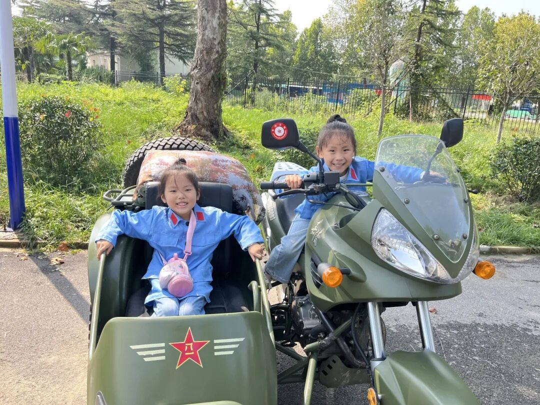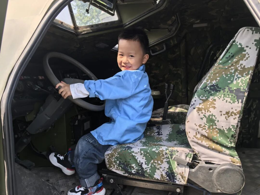 一排排威武雄壮的军车就像钢铁巨人般映入眼帘,引来了孩子们的阵阵“哇”声。在军人叔叔的守护和讲解下,孩子们伸出小手,轻轻触摸车轮和车身,感受这份坚实的守护力量。最让孩子们兴奋的,是能够排队坐上驾驶室,亲手握一握方向盘,体验一把当“神气小司机”的感觉。那一刻,自豪的笑容在每个孩子脸上绽放。