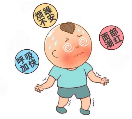 中暑一般发生在户外处于阳光直射、天气炎热或室内密闭不通风的情况下,出现头晕、口渴、恶心呕吐、四肢无力,重则体温升高、意识不清等当孩子玩得满头大汗、脸蛋通红很容易被暑热伤害,如果孩子口干、喊累、有头晕、恶心时,我们要注意轻度中暑的征兆,如有烦躁不安、心慌乏力、突然晕倒、四肢抽搐等那就是中暑了。