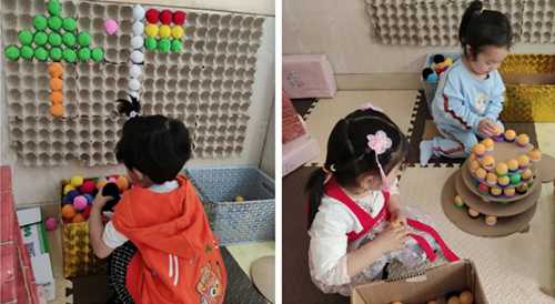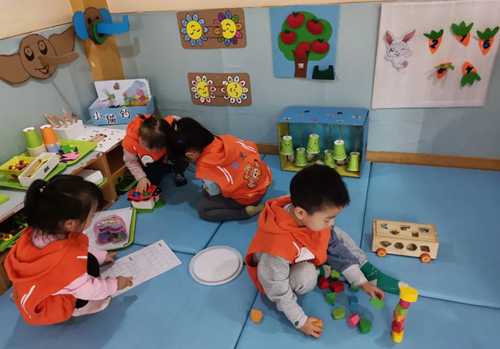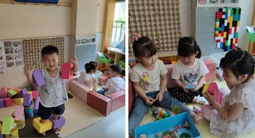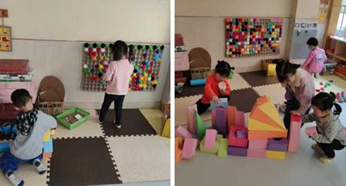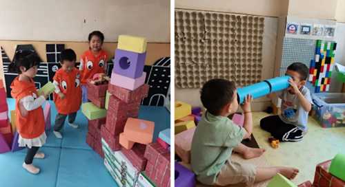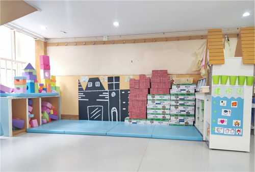 建构区:主要功能是利用积木、酸奶盒、易拉罐、纸盒等进行的建构游戏活动,培养幼儿的空间知觉,发展幼儿的空间想象力、动手操作及交流合作能力。
