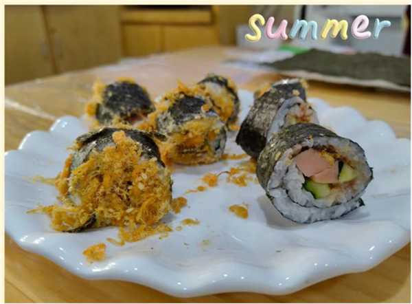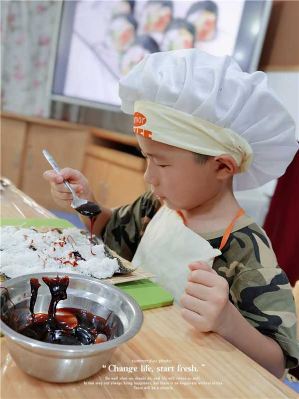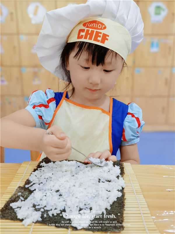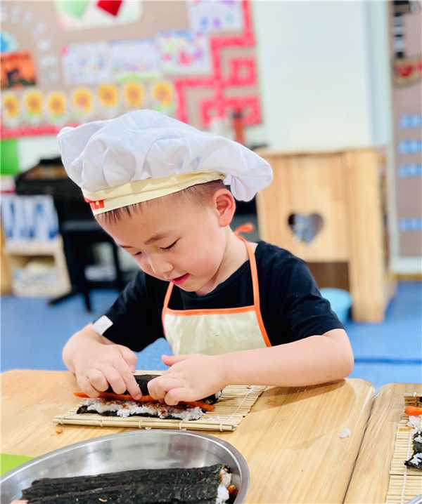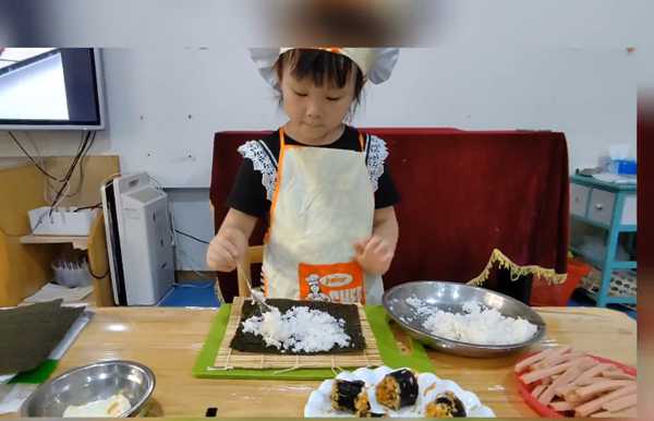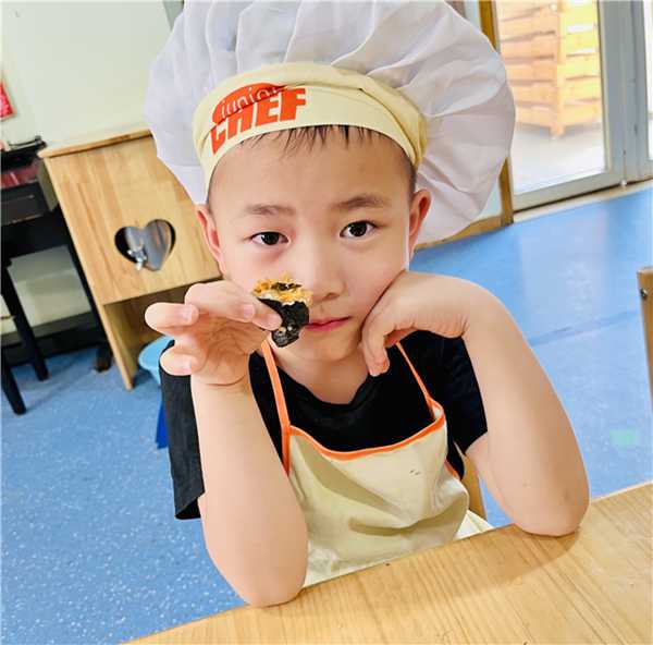 通过努力,美味的寿司做好了,孩子们自信满满,吃着自己亲手制作的寿司,心中无比欢喜。