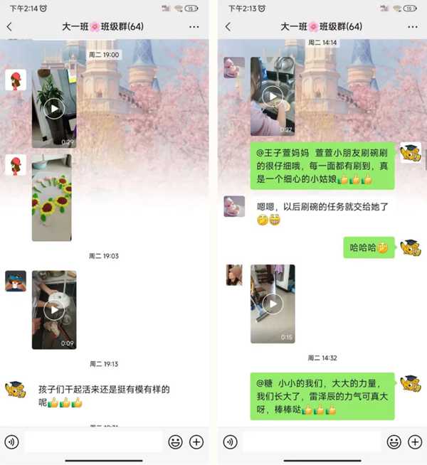 劳动是我们中华民族的美德,劳动知感恩。本周看到孩子们在家里学习刷碗、拖地、制作美食、整理衣服、正确擦屁屁等,体会着劳动的快乐,付出的快乐。德育教育不是一日两日,而是持续的,持久的,将陪伴孩子们一辈子的。快快来一起看看吧!