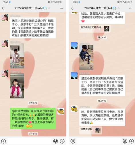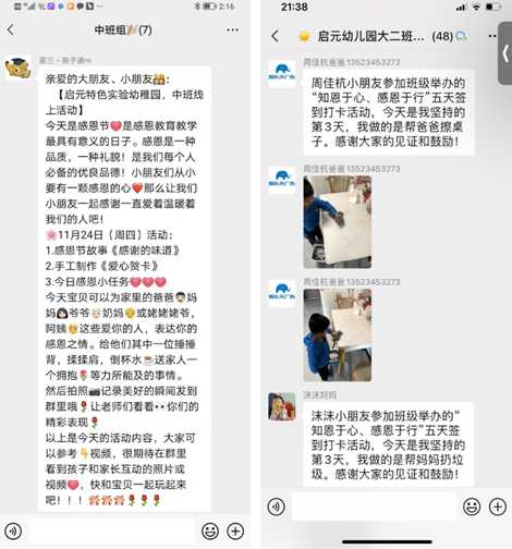 感恩教育就是教导我们要常怀一颗感恩的心面对生活!感恩不需要多么隆重,而是在日常生活中,用实际行动去感谢那些爱护我们的人,去做一些力所能及的事,比如:我们自己穿衣、收拾玩具、擦桌子、洗碗等。启元宝贝们也在用自己的行动感恩自己的父母在疫情居家这段时间对自己的照顾与陪伴。