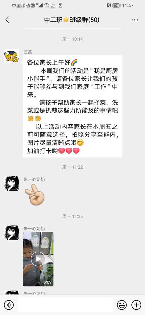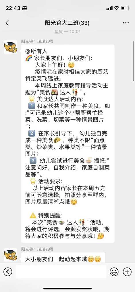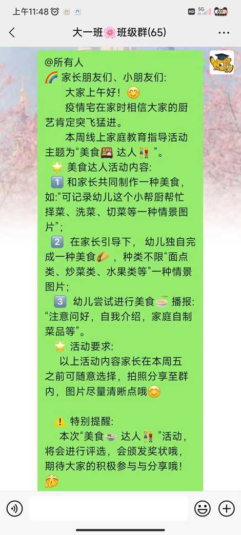 活动前,教师通过班级微信群,向孩子们发出“美食达人”活动倡议邀请,家长和孩子们积极、热情参与活动。