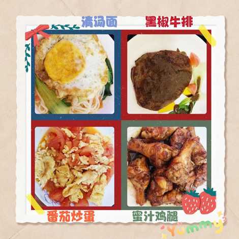 瞧,能干的小厨师们用健康、简单的食材,烹饪出色香味俱全的美食。