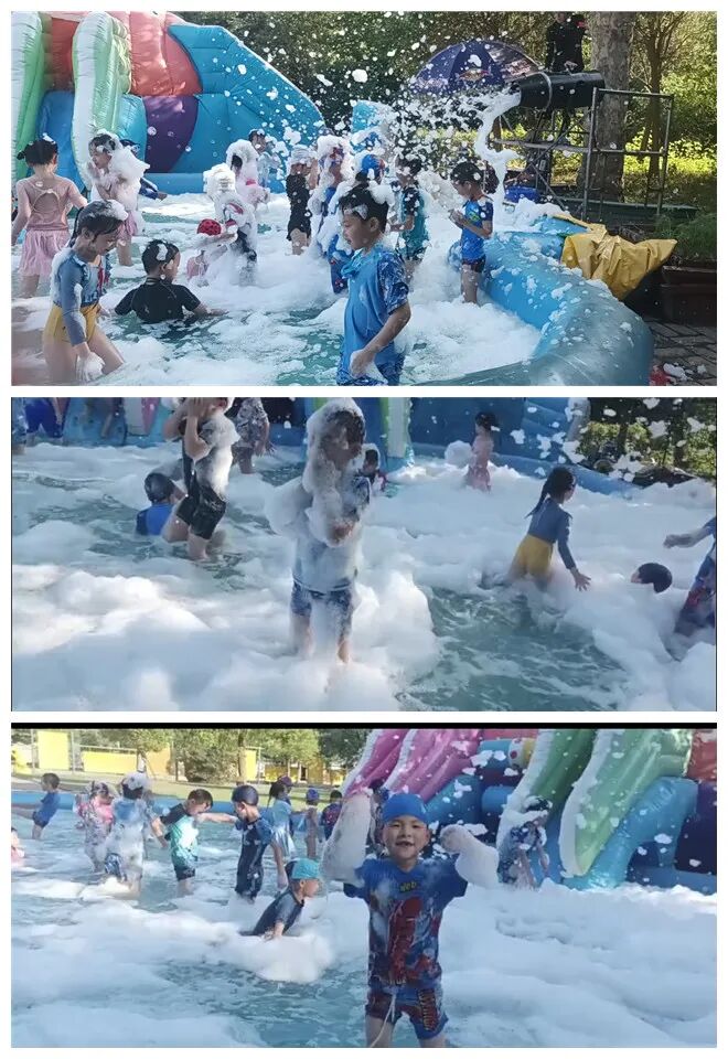 “让教育回归真实的生活,让幼儿回归自然的环境”,这是《幼儿园教育指导纲要》中所蕴含的新理念。大自然是一部真实、丰富的百科全书,蕴藏着巨大的教育财富,它向儿童展示了具体、形象、生动的学习内容,为幼儿获得对世界的感性认识提供了天然的场所。炎炎夏日,戏水玩耍对于孩子们来说是这个夏天收到的最珍贵的礼物,泡沫之夏、水枪大战和浑水摸鱼大赛让孩子们充分体验夏天的乐趣,为孩子们的毕业旅行留下了最美好回忆!