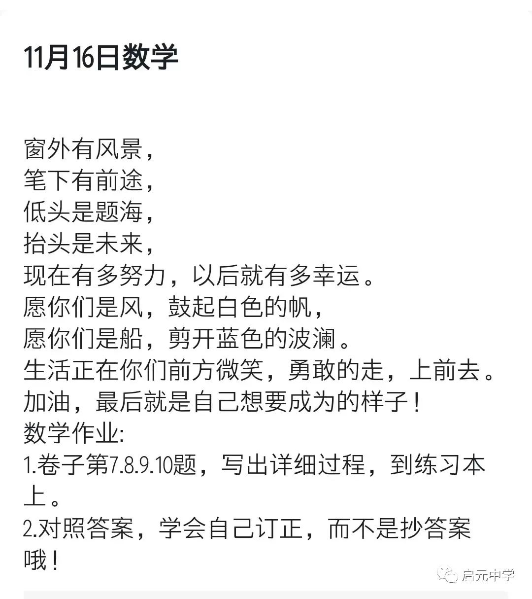 启元中学一直秉承“聆听其心声,顺势而教育”的理念,应时而变,顺势而动,家校共育是我们的传统。线上教学期间,我们更是充分发挥家校联手的优势,共同促进同学们健康成长。