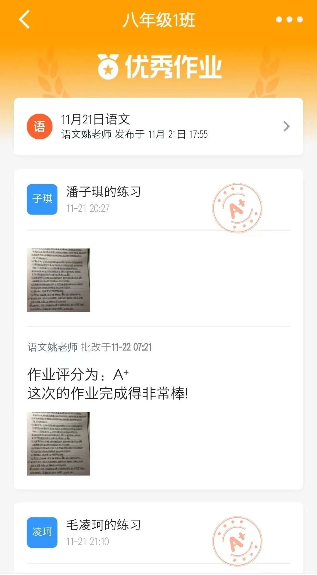 一份份优秀作业背后是孩子们的认真、家长们的督促、老师们的辛苦。